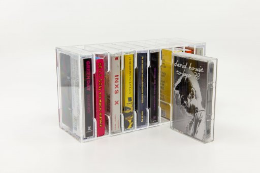 Stijlvolle en transparante opslag voor je cassettecollectie. Plaats tot 10 tapes netjes op een rijtje, aan de muur of op een meubel.