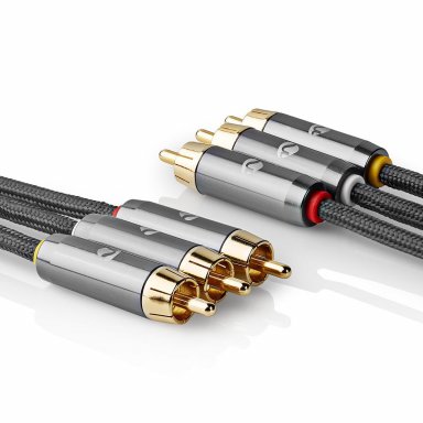 ProfiGold / Fabritallic Composiet Videokabel – 3x RCA Male naar 3x RCA Male – 2.00 m – 480p – Antraciet / Gun Metal Grijs