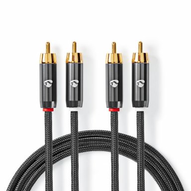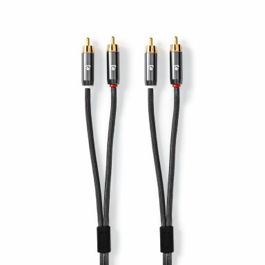 Profigold Stereo-Audiokabel – 2x RCA Male naar 2x RCA Male – Verguld – Grijs / Gun Metal Grijs
