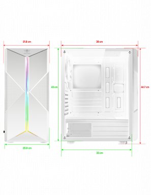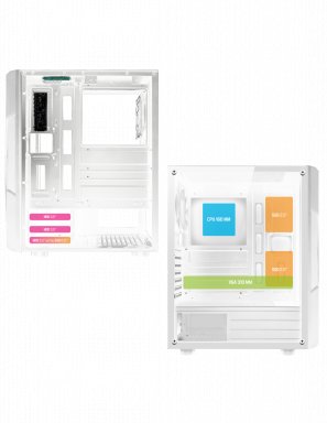 De CLONE 3 ARCTIC is een veelzijdige gaming behuizing in een opvallende witte uitvoering, ontworpen voor krachtige configuraties. Met ruimte voor ATX-moederborden, lange grafische kaarten en meerdere opslagopties, biedt deze case de perfecte basis voor je droompc. Het transparante zijpaneel van gehard glas en het geavanceerde ARGB-systeem zorgen voor een indrukwekkende visuele uitstraling die perfect past in een licht kleurenthema.