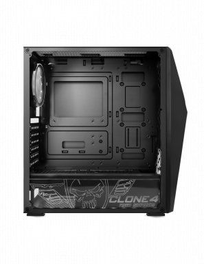 De CLONE 4 is een hoogwaardige gaming behuizing, ontworpen voor de meest veeleisende configuraties. Met zijn innovatieve scharnierende glazen zijwand, gebogen ARGB-verlichte front en uitgebreide koelingsmogelijkheden biedt deze case de perfecte basis voor een indrukwekkende en krachtige gaming setup.