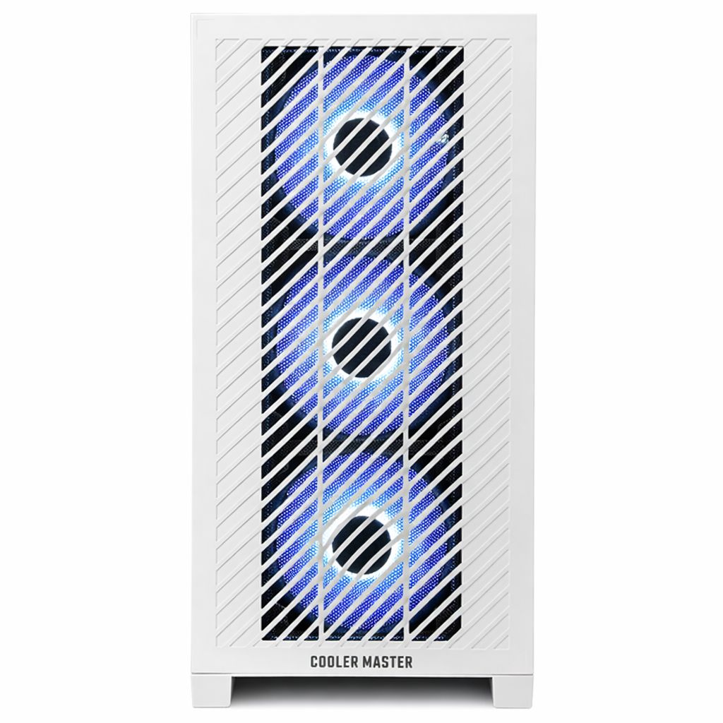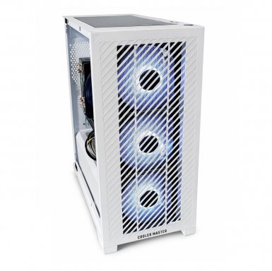 Complete gaming pc in een witte Cooler Master Elite 301 behuizing met gehard glas, samengesteld en getest door ElectroFlex. Perfect voor vloeiende 1080p gaming en algemeen gebruik.