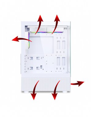 Voor gamers die hun configuratie willen showen en tegelijkertijd willen genieten van optimale koeling en flexibiliteit, is de SPECTRA de perfecte keuze. Het unieke 270° zicht laat je componenten letterlijk stralen, terwijl de 3 meegeleverde ARGB-ventilatoren en uitgebreide RGB-ondersteuning zorgen voor een indrukwekkende lichtshow. Dankzij de compatibiliteit met grote grafische kaarten, hoge CPU-koelers en waterkoeling, is deze behuizing klaar voor de meest veeleisende configuraties. Het stijlvolle witte ontwerp maakt hem tot een frisse blikvanger in elke gaming setup.