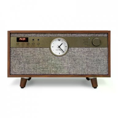 De Victrola Century Signature+ tilt het klassieke 6-in-1 muziekcenter naar een hoger niveau met 18” vloerpoten en een geïntegreerde verlichte analoge klok. Een echte blikvanger die retro design combineert met moderne functionaliteit.