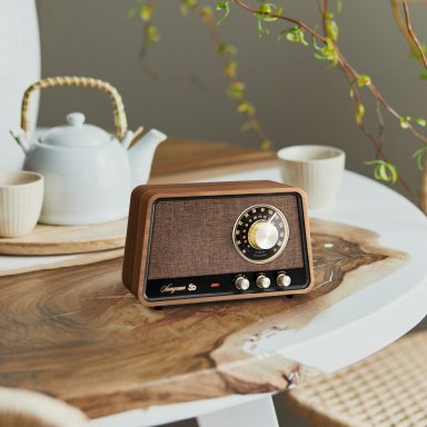 De WR-101 is een retro-stijl Bluetooth-tafelradio die perfect vintage esthetiek combineert met een minimalistisch ontwerp. Zijn behuizing is gemaakt van houten materialen, wat zorgt voor een warm en comfortabel gevoel. Dit wordt aangevuld door het geweven luidsprekerrooster en gebruiksvriendelijke knoppen, waardoor een soepele en intuïtieve gebruikerservaring wordt gegarandeerd.