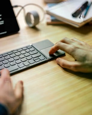 Compact en reisvriendelijk opvouwbaar toetsenbord met geïntegreerd touchpad voor naadloze bediening van al je apparaten
